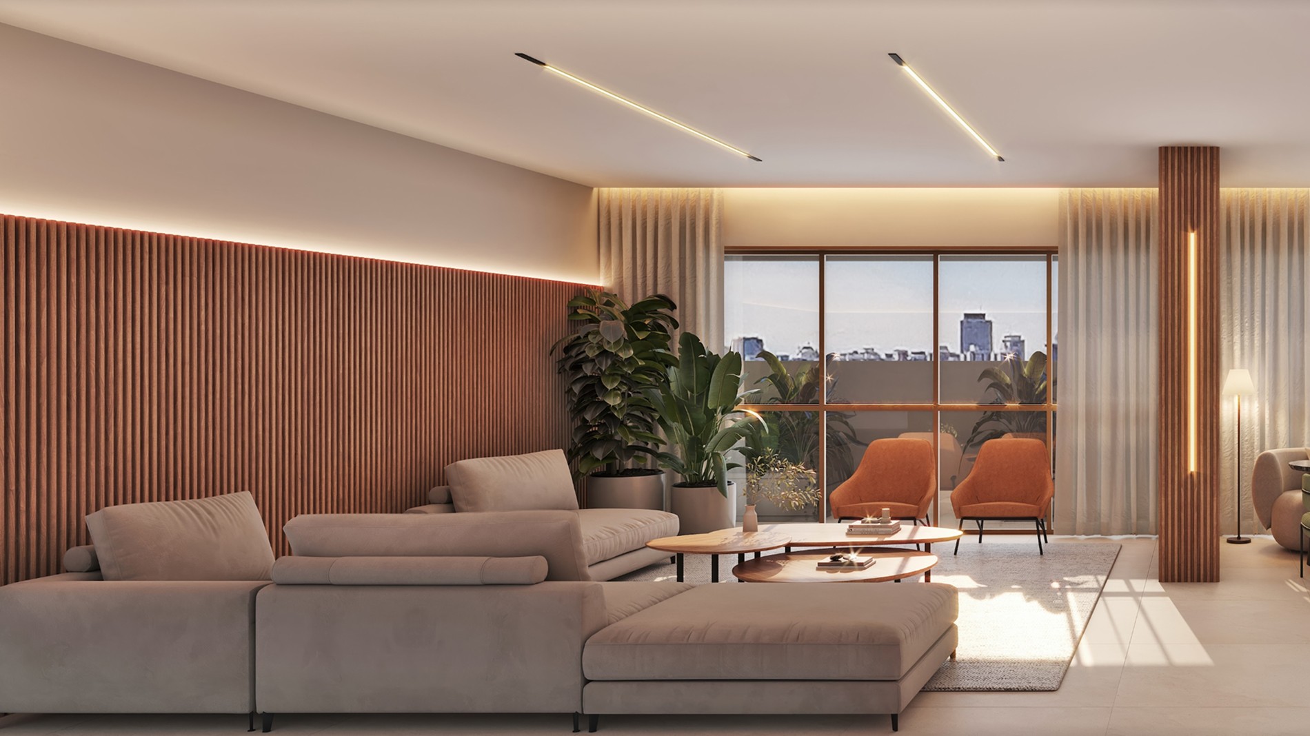 Interiores com design contemporâneo e atmosfera acolhedora.